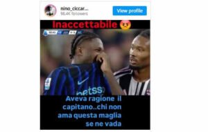 Nino Ciccarelli, sosok penting dari kelompok suporter garis keras Inter, Curva Nord, turut angkat bicara. Dalam komentarnya yang beredar di media, ia menyebut: