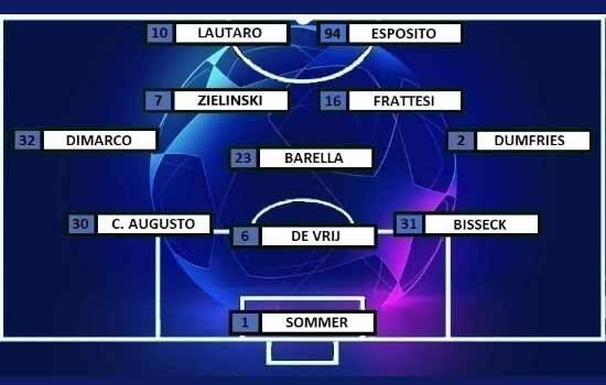 INTER (3-5-2): Sommer; Bisseck, De Vrij, Carlos Augusto; Dumfries, Frattesi, Barella, Zielinski, Dimarco; Pio Esposito, Lautaro.