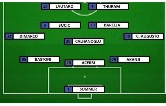 INTER (3-5-2): Sommer; Akanji, Acerbi, Bastoni; Carlos Augusto, Barella, Calhanoglu, Sucic, Dimarco; Thuram, Lautaro.