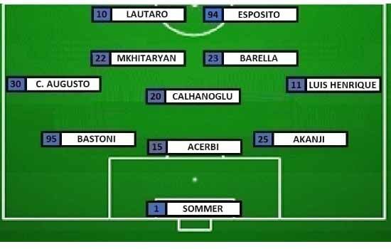 Inter Milan (3-5-2): Sommer; Akanji, Acerbi, Bastoni; Luis Henrique, Barella, Calhanoglu, Mkhitaryan, Carlos Augusto; Pio Esposito, Lautaro.