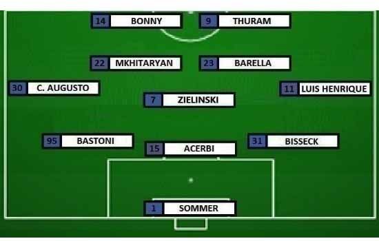 INTER (3-5-2): Sommer; Bisseck, Acerbi, Bastoni; Luis Henrique, Barella, Zielinski, Mkhitaryan, Carlos Augusto; Thuram, Bonny.