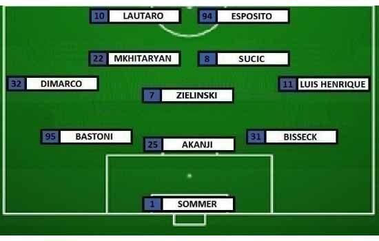 INTER MILAN (3-5-2): Sommer; Bisseck, Akanji, Bastoni; Luis Henrique, Sucic, Zielinski, Mkhitaryan, Dimarco; Esposito, Lautaro.