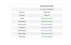 Selain itu, pasukan Chivu mengungguli 96% tim Eropa dalam efektivitas menyerang, serta mendominasi penguasaan bola dan kendali permainan lebih baik dari 93% klub lain di benua ini.